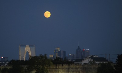 9月24日在江苏苏州拍摄的圆月。新华社发(杭兴微/摄)