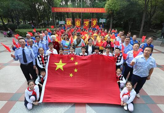 与国旗合影,为国庆献歌,寄托美好的祝福。9月30日,湖北省武汉市百步亭社区举办“我与国旗合个影”主题日活动,千余名居民自发前来参加升国旗仪式。
