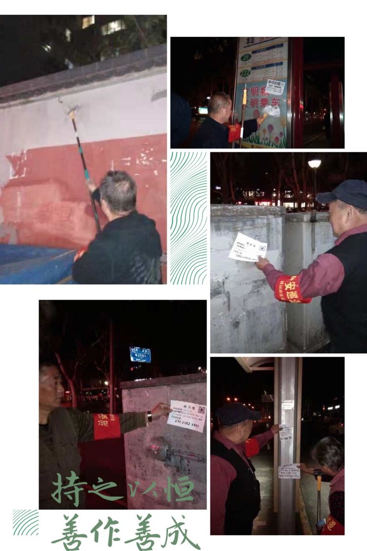 "萤火虫"志愿服务队继续开展"清除野广告,营造绿色家园"专项治理行动,志愿者们对辖区内公交站牌、电线杆、墙面等公共场所出现的野广告进行清除。希望用行动唤醒全民环保意识,给社区居民营造一个舒适、干净的居住环境。