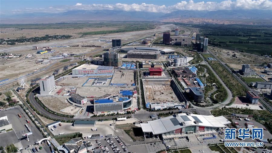 中哈霍尔果斯国际边境合作中心全景(7月27日无人机拍摄)。