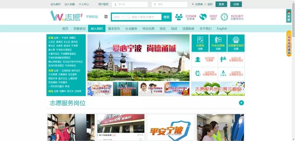 着眼于满足全市志愿者和志愿服务组织、机构的各类服务需求,以宁波We志愿服务网为总平台总枢纽,建立全市统一的志愿服务网络管理系统。We志愿服务网中英文双语,设置登记注册、志愿者招募、需求发布、时间记录、信息动态、志愿地图等服务模块,推出手机APP和微信公众号,内容丰富、使用方便、管理快捷。向上对接中国志愿服务网、省“志愿汇”网络平台,向下整合各区县(市)、各部门志愿服务网络,实现互联互通、资源整合和信息共享。设置服务信息自动推送功能,按服务意向区域、领域和时段,自动把各种志愿服务岗位推送给符合条件的志愿者,实现供需双方智能对接。设置分级管理功能,赋予各级志愿服务机构、组织、团队相应管理权限,独立运作。设置评价反馈和诚信监督功能,供需双方可以对志愿服务活动的服务质量、社会效益、服务态度、基本保障、发布内容等进行反馈和评价,确保志愿服务透明可信、健康有序。