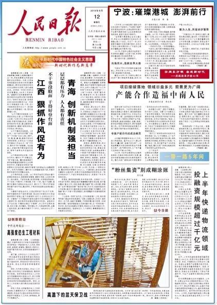 2018年8月12日,《人民日报》头版“宁波:璀璨港城 澎湃前行”