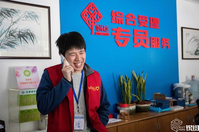 在浙江省杭州市西湖区九溪社区,90后社工赵奔阳随时接听着来自社区老人们的需求电话。经常奔波在社区为老人解决电脑问题的赵奔阳,曾在2008年微软信息化核心技能世界大赛中国赛区中获得亚军,具有网络工程师职称、信息系统专家证书。赵奔阳毕业后并未成为一名工程师,而是继续他热爱的志愿服务,90后的他已经做了近十年的志愿工作。图片来源:锐图