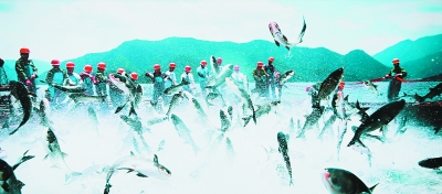 企业与地方联合发展生态绿色经济,在千岛湖创新发展“保水渔业”,使当地的绿水青山变成了金山银山。图为千岛湖巨网捕鱼的壮观景象。(资料图片)