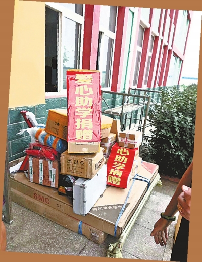 捐给老家小学的教学物资和5000元现金