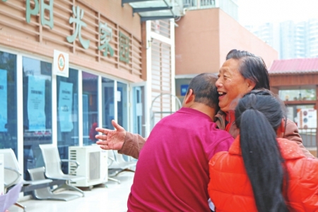 “王老师来了,我们想死您了。”“您多久再回来为我们上一堂课吧!”11月14日,76岁的王可成来到成都市金牛区阳光家园看望他曾经教过的学生们,再次见面大家都很激动,一拥而上抱成一团。