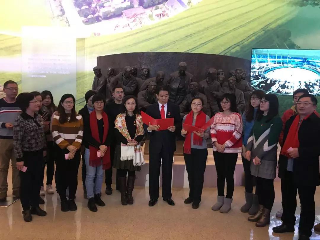 另一边,来自二十五中的教职工,在展览的安徽小岗村18位农民按下包产到户“红手印”的雕塑前,真挚地朗诵了二十五中校友词作家塘萍创作的《小岗村的红手印》,现场观众纷纷围观倾听。
