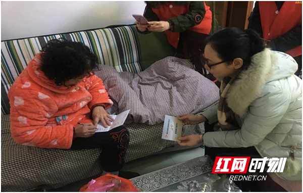 志愿者上门为邓丽芳服务。图片来源:红网