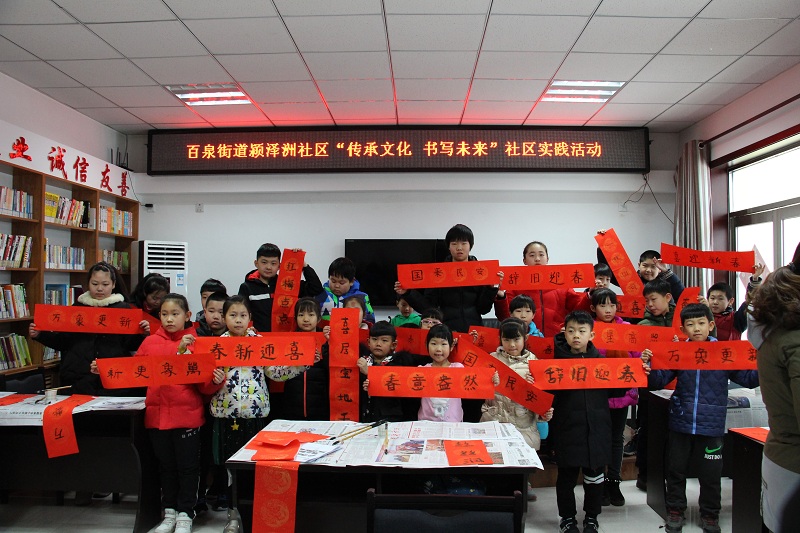 为了弘扬传统文化,让更多的青少年体验写春联的寓意,颍泽洲社区开展了“传承文化 书写未来”青少年社区实践活动,在活动过程中指导30名中小学生写春联,让孩子们了解春联的形式、寓意、传统文化的魅力。