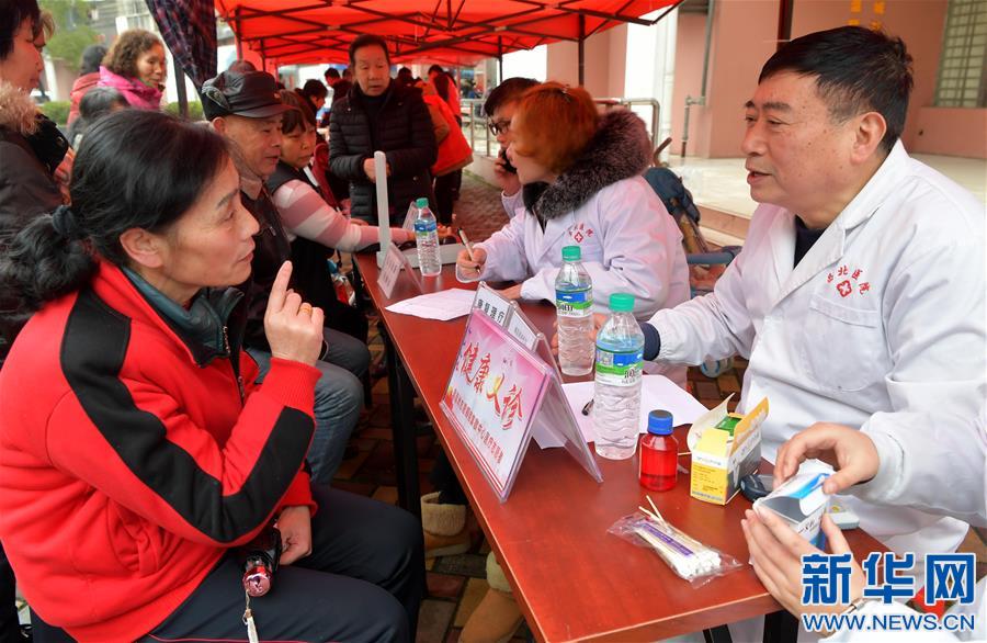 3月5日,在江西省南昌市红谷滩新区凤凰洲志愿服务集散中心,志愿者为社区居民提供便民义诊服务。新华社记者 彭昭之 摄