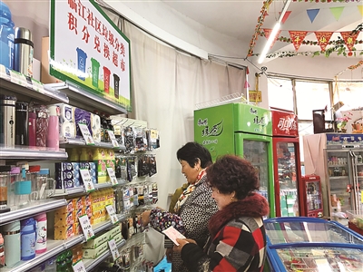 原本,社区专门开辟了垃圾分类积分兑换工作站,而且每月定期组织广场集中兑换活动。在实际操作中,很多居民反映赶不上兑换的时间。为此,社区决定在便民超市内开设垃圾分类积分兑换点。这一做法受到居民“热捧”。