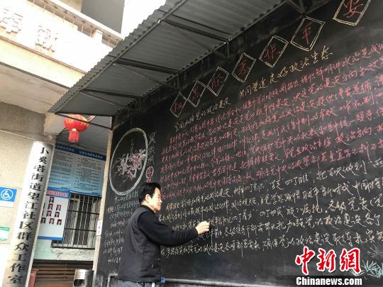 王玉春一笔一划绘制黑板报 邱天星 摄