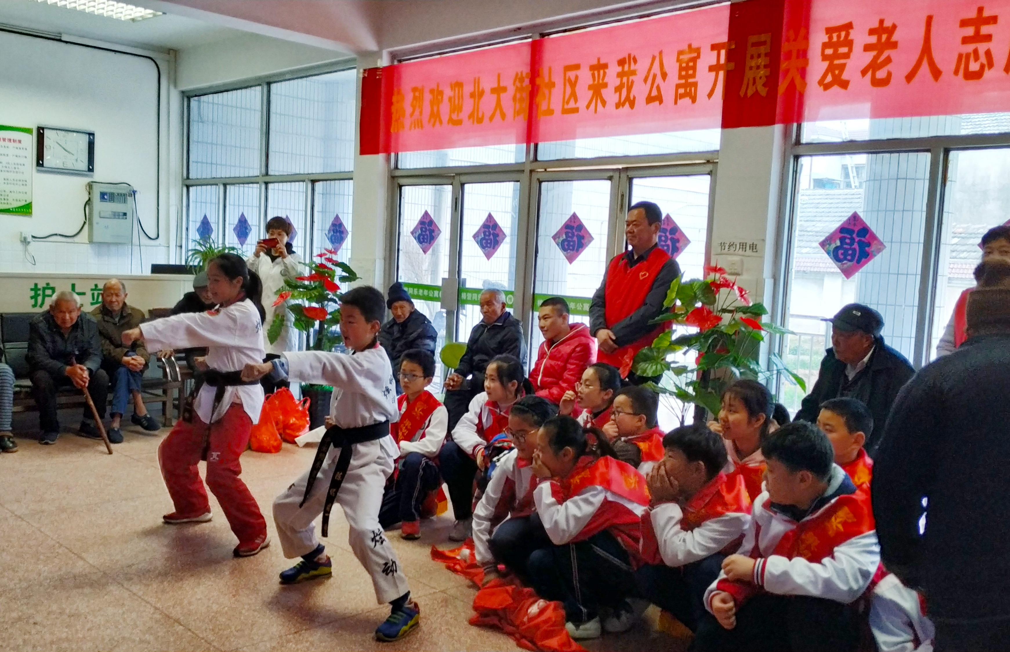 小志愿者们为老人们表演跆拳道 图片来源:北大街社区