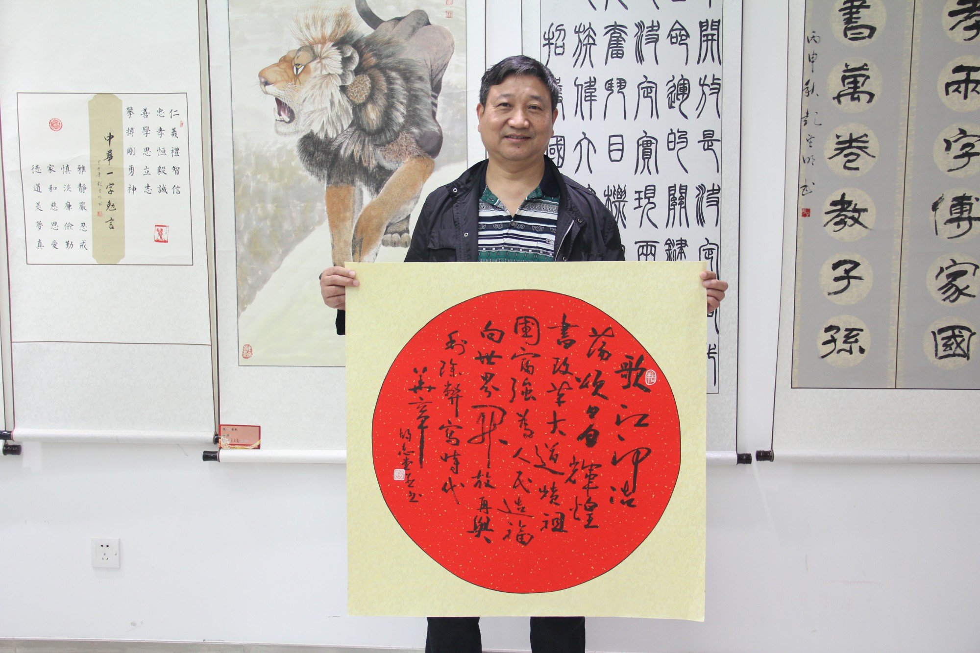 “歌江河浩荡,颂日月辉煌。书改革大道,祝祖国富强。”3月25日,在“我和我的祖国”社区书画大赛启动仪式上,胡志堂用书法作品《祝福祖国》抒发对祖国的热爱,同时也吸引了在场所有人的注意。令人意外的是,《祝福祖国》诗词内容全部由胡志堂本人原创,“从前期构思到逐字推敲,再到最后落笔成书,历经半个多月。”为什么如此耗费精力的去写一首词?“将文化的传承与国家大战略结合起来,才能真正表达我们当代书法家的家国情怀。”胡志堂说。