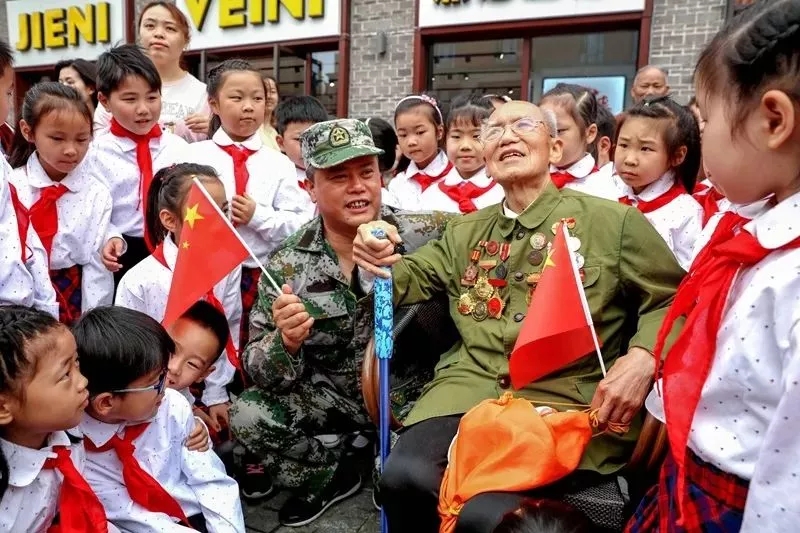 学生和老兵共同高歌。长兴传媒集团 王斌 谭云俸 许斌华 摄