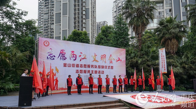 传播文明礼仪,践行时代新风,营造“文明金山”良好社会风尚。 14日,两江新区金山街道志愿服务队授旗仪式暨志愿两江、文明金山志愿服务主题活动举行。