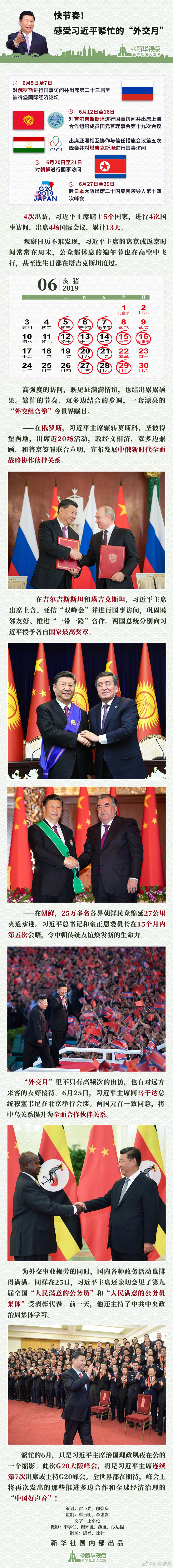 6月27日,国家主席习近平离京赴日本大阪出席G20领导人第十四次峰会,这已是他一个月内的第四次出国访问。这种几乎“一周一访”的快节奏,记录着大国领导人忙碌的身影,也见证着中国外交的积极和主动。