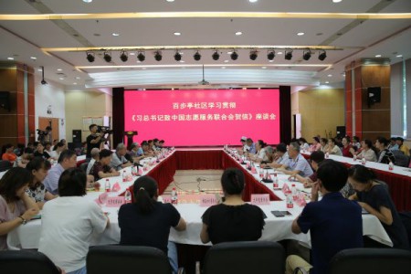 7月25日下午,江岸区百步亭社区召开贯彻学习《习近平致中国志愿服务联合会第二届会员代表大会的贺信》精神座谈会。百步亭社区志愿者、志愿服务工作者、“双进双服务”志愿服务队负责人代表近百人齐聚一堂,共话志愿服务。