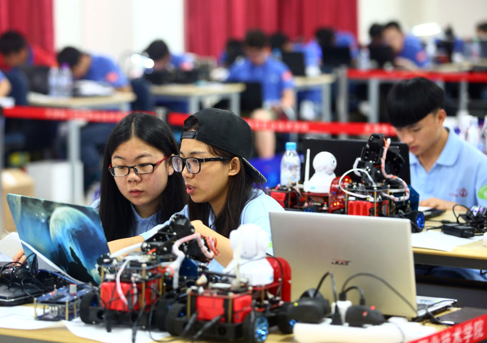 2016全国职业院校技能大赛在天津开赛。这是 2016年5月8日,选手参加高职组嵌入式技术与应用开发比赛。