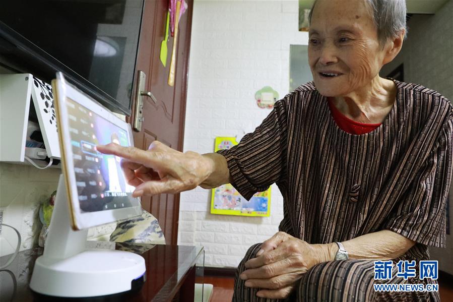 甘肃省兰州市86岁市民祝磊姝不仅能使用视频通讯设备报警,还可以收看电视节目(8月9日摄)。 新华社记者 梁军 摄