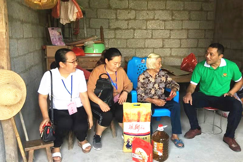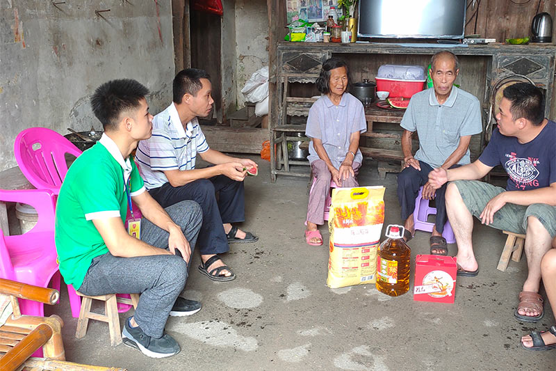 爱心社党支部带领近40名志愿者分成12个小组,分赴各乡镇相关村屯进行入户慰问,为39位列入“荔德”助学项目的贫困学子、17位列入“康寿”敬老项目的贫困老人以及7位抗战老兵送去价值7500多元的月饼、大米、食用油等慰问品。