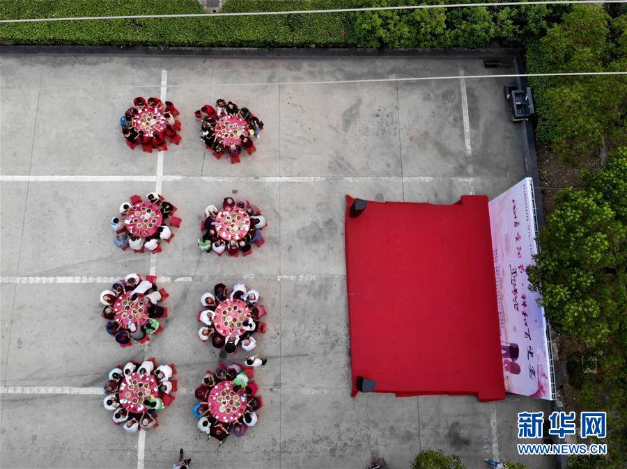9月24日,社区老人们共享敬老宴(无人机拍摄)