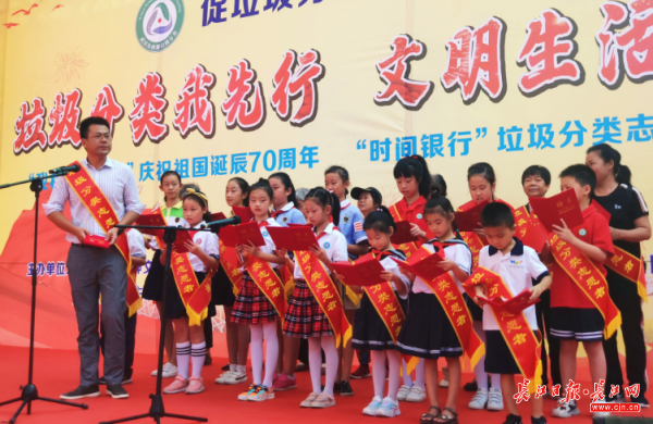 垃圾分类志愿者上台宣誓。见习记者 范佳昕 摄