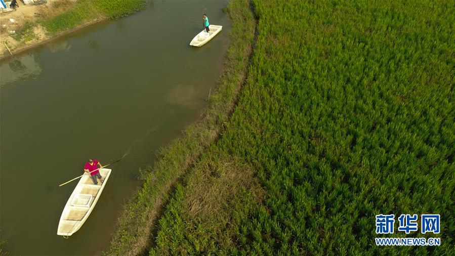 这是9月19日在湖南益阳市南县茅草街镇庆丰村拍摄的采用稻虾蟹综合种养模式的稻田(无人机拍摄)。新华社记者 薛宇舸 摄