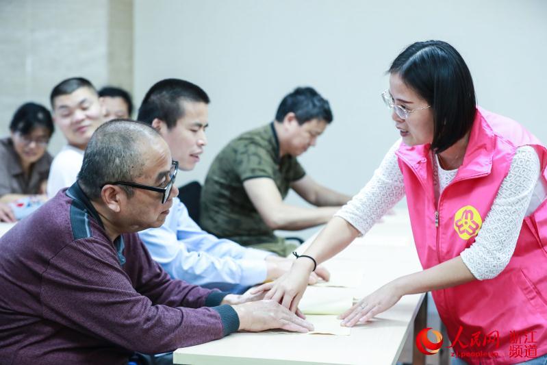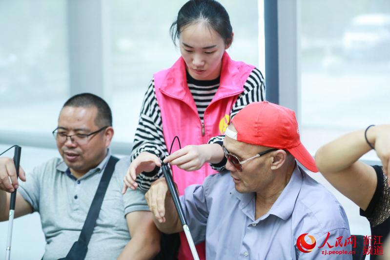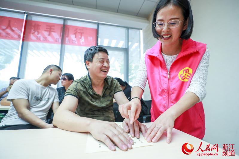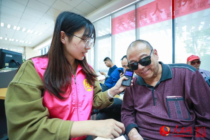 10月15日是第32个国际盲人节,10月14日,浙江省德清县武康街道妇联在图书馆视障阅览中心开展“关爱盲人 携手同行”活动,视障人士在盲文老师和妇女志愿者指导下认盲文、走盲道,同时还让他们体验了智能听书机“看”图书、 “玩”电脑等,丰富他们的精神家园。(王正)