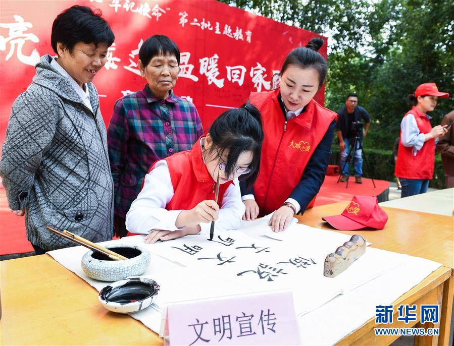 10月15日,志愿者在余姚市舜北小区书写文明标语。 当日是浙江省余姚市每月一次的“文明行动日”,余姚市大城小爱公益服务中心的志愿者组成多支志愿服务队,走进城区多个社区,开展义诊、拍摄证件照、维修楼道灯等志愿服务,为社区居民送来温暖。 新华社记者 徐昱 摄