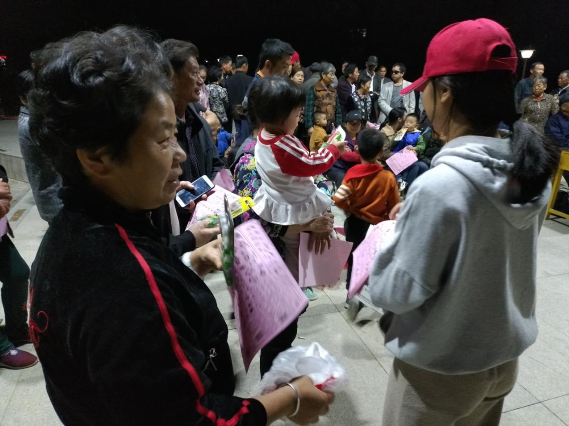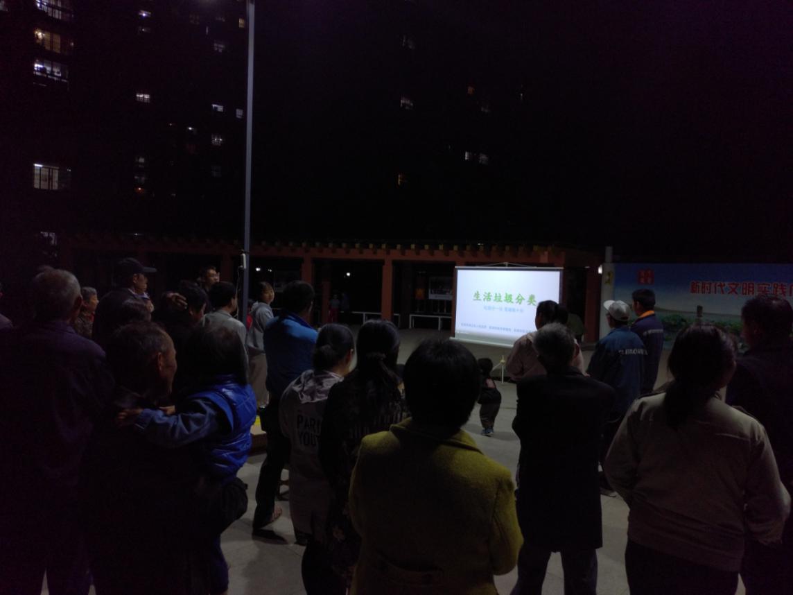 活动当晚,工作人员早早挂上了幕布,调试好设备,放起了音响。7点,活动正式开始,此次活动分三个主题,一个是以“不忘初心 牢记使命”为主题的电影《建国大业》,另两个分别是《垃圾分类宣传片》、《扫黑除恶宣传片》。不到一会儿,吸引了不少过往群众驻足观看,居民越聚越多,前来观影的有六七十岁的老人,有大人领着孩子的。随着影片中生动的画面播放,他们时而露出紧张的表情,时而爆出一阵阵欢快的笑声,气氛十分热烈。
