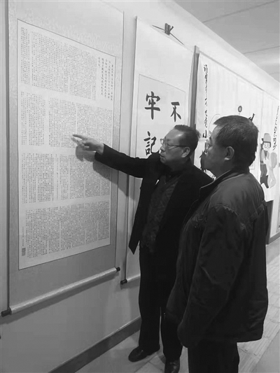 李正安介绍他的书法作品