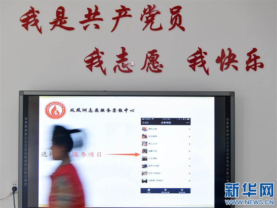 11月18日,红谷滩新区凤凰洲志愿服务集散中心大屏幕展示志愿服务项目。近年来,江西省南昌市红谷滩新区探索搭建志愿服务集散中心平台,推行以党员志愿者为核心的“居民点单、中心派单、志愿者接单”服务模式,对接辖区困难群众需求,提供预约服务、上门服务、集中服务。新华社记者 彭昭之 摄