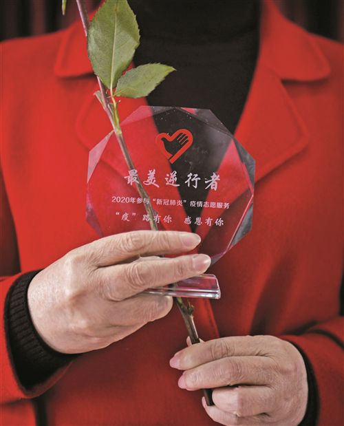 昨天(4月1日),嘉兴南湖区新兴街道王安社区为60位积极参与疫情防控的志愿者颁发“最美逆行者”奖杯,感谢他们守望相助的奉献精神。(闻人达、邱云婕)