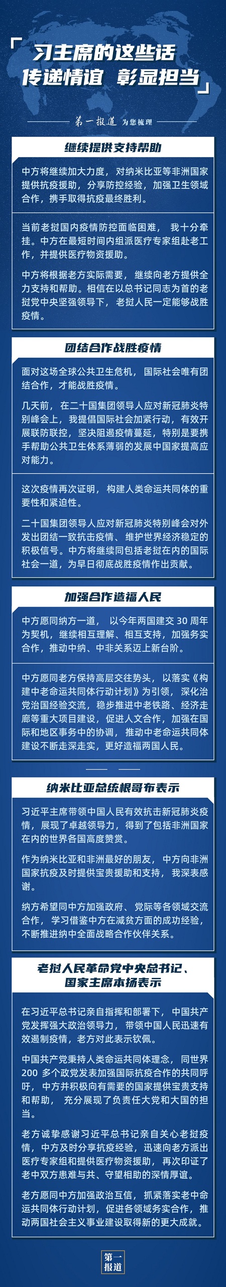 守望相助,共克时艰。疫情发生以来,中国始终从构建人类命运共同体高度,积极开展疫情防控国际合作。在3日同纳米比亚、老挝领导人的通话中,习主席再次表明向有关国家提供抗疫援助、推动国际社会团结合作的立场,传递中国情谊,彰显大国担当。