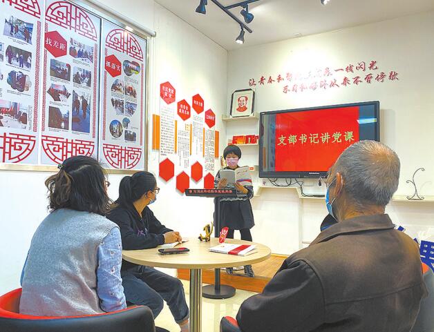 瑞驰社区党委书记孙宝茜为辖区党员上党课。