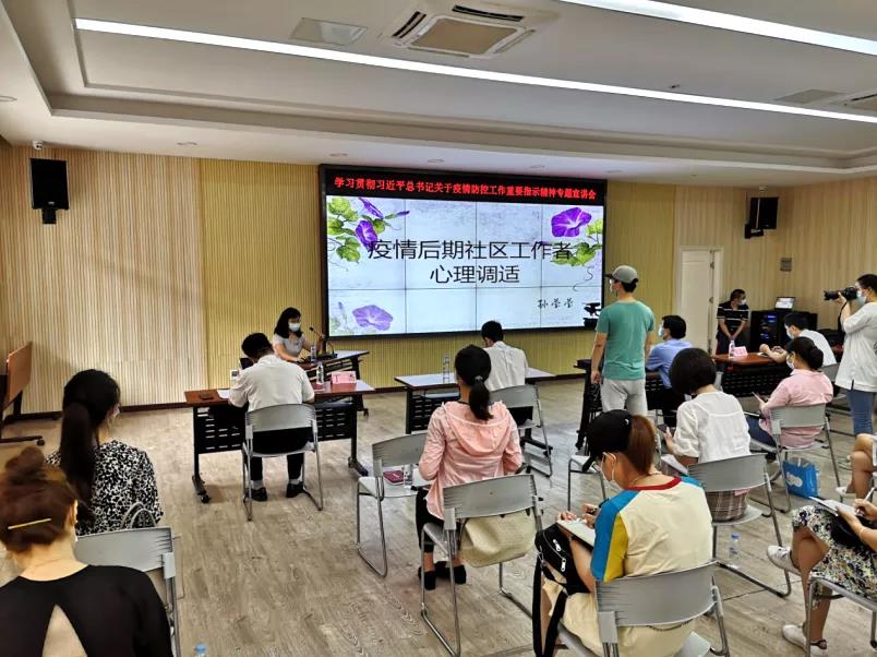 市委党校副校长丁士松教授作《认真学习贯彻习近平总书记重要讲话精神 全力做好社区常态化疫情防控工作》讲座,从五个层面对习近平总书记关于疫情防控工作重要讲话精神进行了解读,并就如何学深悟透习近平总书记重要讲话精神,进一步做好社区常态化防控等工作提出具体建议;市委党校哲学教研部孙莹莹副教授以《疫情后期社区工作者心理调适》为题,结合自身深厚的心理学专业知识和个人抗疫亲历体验,为社区工作者讲解了具体、实用的疫后心理调适策略和方法。