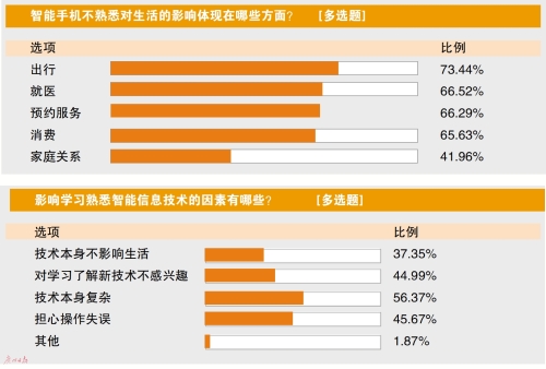 近日,广州日报“花城老友记”联合多家社工组织开展一项微调研,在回答“影响学习熟悉智能信息技术的因素有哪些”时, 56。37%的长者认为技术本身较复杂,半数长者担心操作失误。
