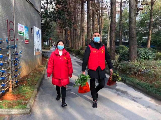疫情期间,雁峰区幸福社区“衡阳群众”周正国为居家隔离人员送菜上门。图片来源:新湖南客户端
