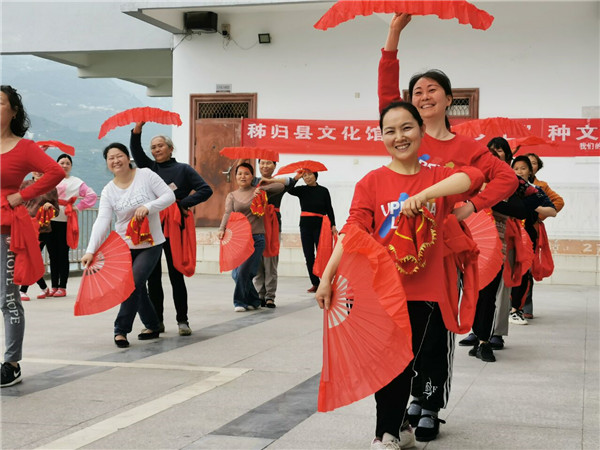 以“送”促“种”,让“送”扎根,让“种”结果。秭归县文化馆打造“文润乡土”种文化品牌服务项目,着力培养一批带不走的、与基层结对的文艺人才。今年3月以来,“文润乡土”志愿服务队伍累计培训文艺骨干、编创人员1200多人。受训人员如同种子一样,撒向全县50多个镇村,开展“种”文化服务,各乡镇群众广泛参与,这才有了5月29日上午万人参加全民广场舞直播活动的盛景。同时,“种”法律政策、“种”文化技能、“种”文化服务的效果,也进一步在基层凸显。