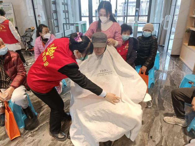 赋兴社区“巾帼”志愿服务队为辖区老年人定期进行义剪、按摩,让辖区老年人们切实感受来自社区的温暖和体贴。爱心义剪、按摩志愿者娴熟、细心地为每一位老人修剪头发、按摩肩膀,看着理出清爽利落的发型和健朗的身影,老人们一个个脸上露出满意的笑容,不仅称赞理发师的手艺和按摩师的手法,还对志愿者们的贴心表示感动。