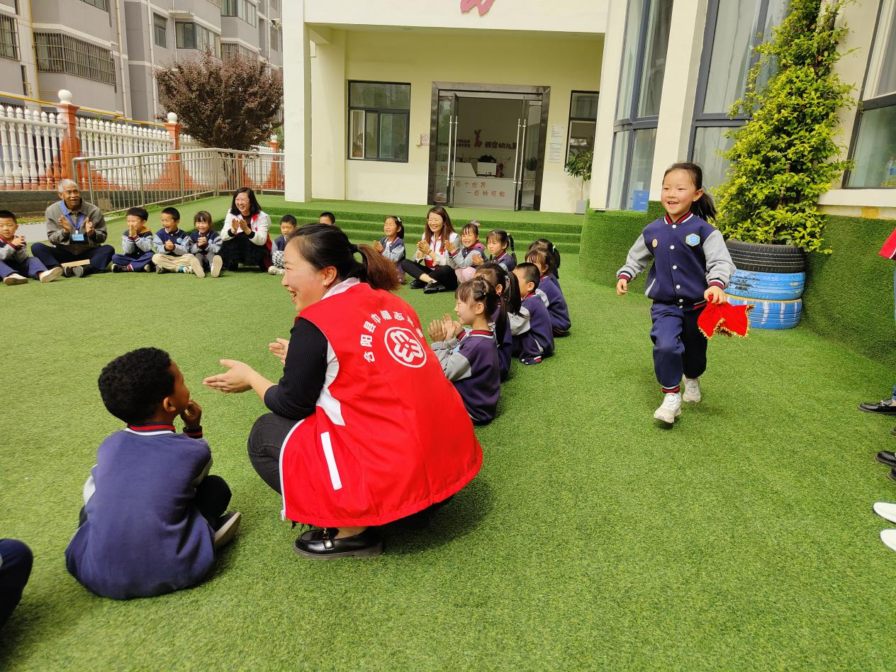 青春的“游戏” 传承五四星火,展示青春风采。在青年志愿者协助下,老师带领小朋友们进行“五四趣味游戏”活动,一起玩《丢手绢》游戏,社区老党员们也与孩子们共同游戏,大手拉小手,建起幸福圆,孩子们在游戏中你追我赶,描绘出一幅老少同乐的欢乐画面。
