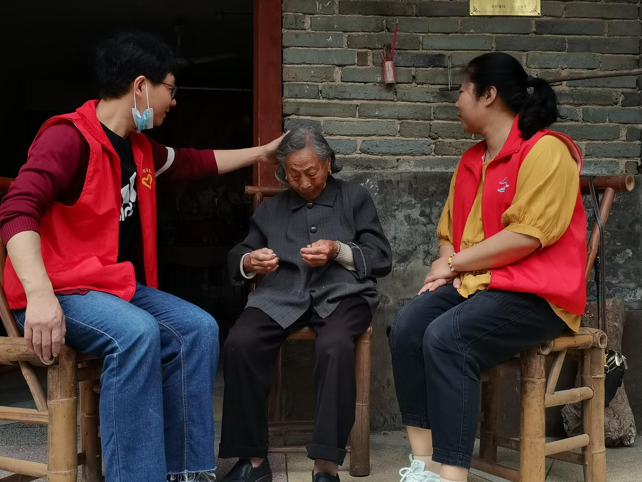 彩虹志愿服务队志愿者陪孤寡老人聊天