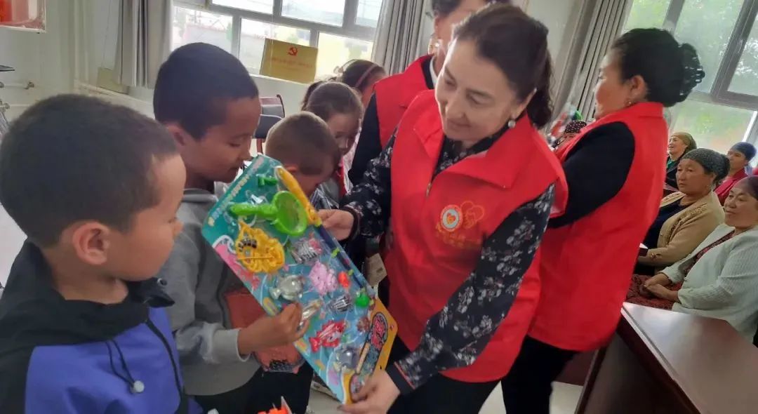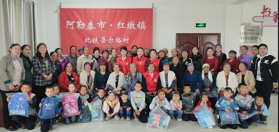 在阿勒泰市红墩镇,阿勒泰市妇联、民族团结一家亲爱心志愿者团队、红墩镇妇联联合来到比铁吾尔格村开展“童心迎六一快乐共成长”巾帼志愿送温暖慰问活动,针对困难儿童慰问比铁吾尔格村教学点的20名儿童捐赠爱心学习用品,了解孩子们的学习、思想、生活状况并送节日的祝福。