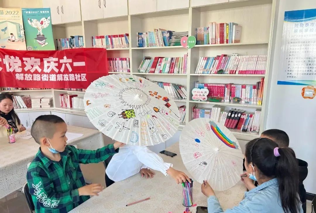 在阿勒泰市解放路街道,志愿团队开展了“国风雅韵尽“扇”尽美·童颜大悦欢庆六一”手工制作活动,孩子们在社区工作人员及家长的指导下通过自己的想象力绘制出专属于自己的彩绘团扇,锻炼了动手能力,培养了想象力、创造力和审美能力。