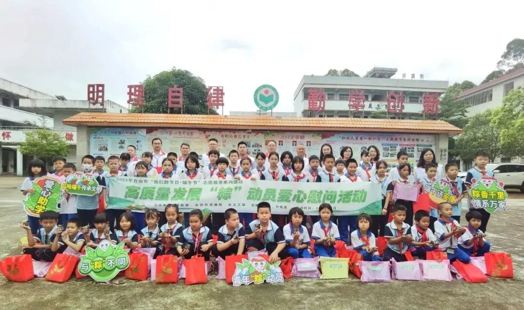6月19日下午,广东省江门市台山市联合市教育局、市自然资源局、中电建(台山)绿色建材有限公司在三合镇那金学校联合开展青年高质量发展“粽”动员——爱心慰问活动,与孩子们开展丰富多彩的互动游戏和交流活动,为孩子们送上节日的祝福与关爱。