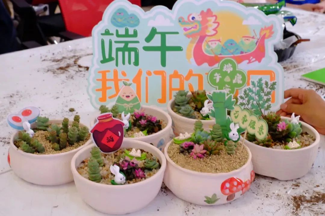 志愿者们还在志愿中心老师的带领下,动手制作“端午安康绿植”,用绿色表达美好的节日祝愿。