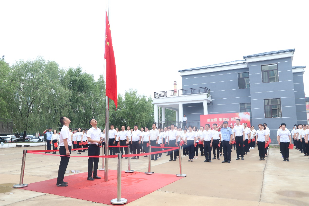 10时整,升国旗仪式正式开始,全体民警、辅警整齐列队,精神焕发,警容严整,神情庄重。随着第一书记下达的口令,国旗护卫手们昂首挺胸,迈着坚实的步伐,向国旗台前行进。“升国旗、奏国歌”,随着主旗手一个潇洒地扬旗动作,鲜艳的五星红旗伴随着雄壮的国歌声,在夏日的朝阳中冉冉升起。红石社区党总支书记武倩同志在迎风招展的国旗下,回顾了中国共产党成立102年的发展历程,特别是党的二十大以来发生的巨大变化、取得的伟大成就,并号召干部职工铭记光辉历史,不忘走过的路;坚守初心,坚定前行的路;矢志担当,走好脚下的路。全体党员干部群众向国旗致以崇高的敬意,祝贺伟大的党生日快乐,祝福伟大的祖国繁荣昌盛。
