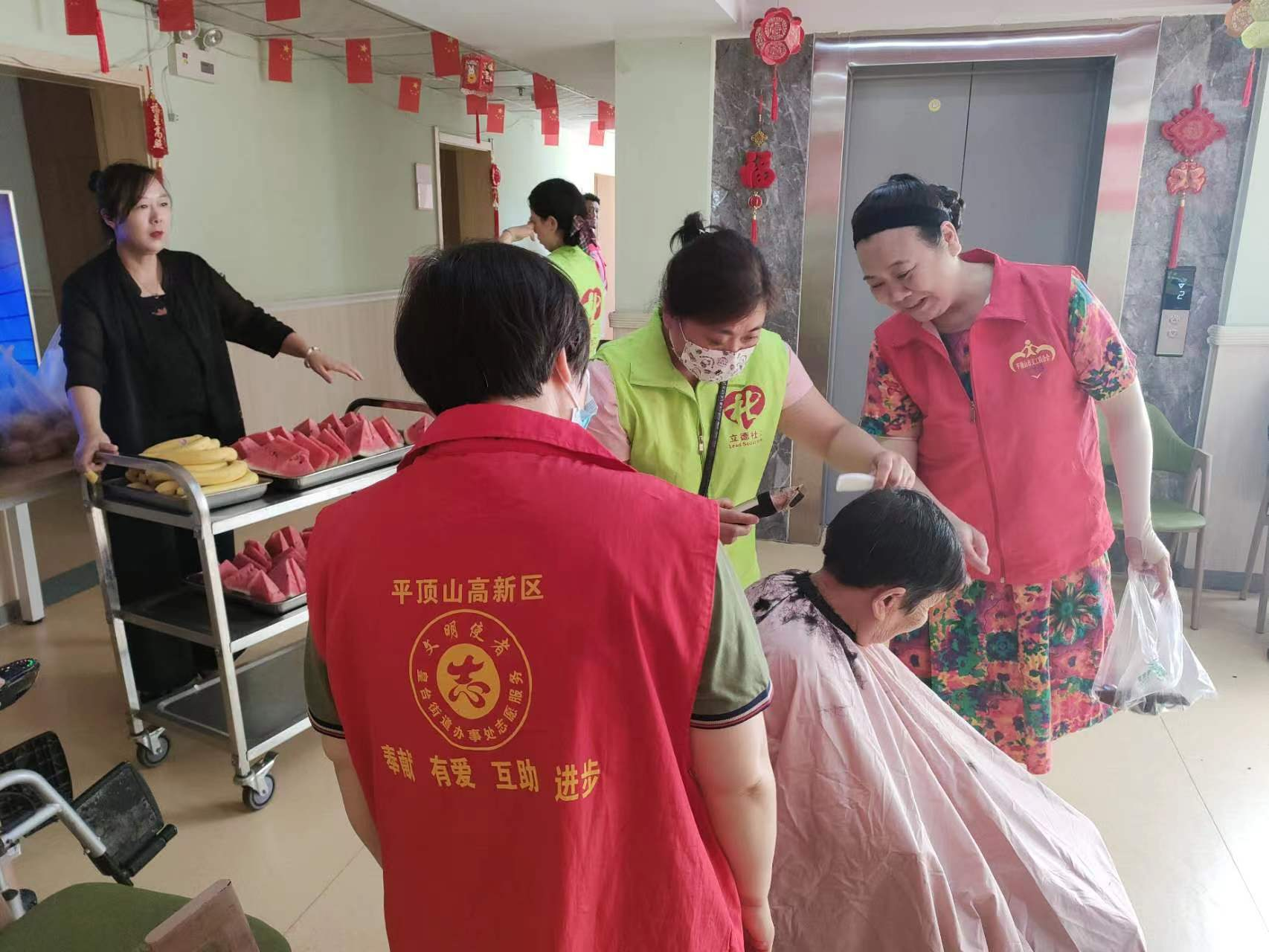 为了弘扬尊老、爱老、敬老、助老的中华民族传统美德,营造关爱老人浓厚的社区氛围,为了贯彻落实“五星”支部创建工作,发挥党建统领、多元联动新模式,为了加强关爱“一老一小”工作,河南省平顶山高新区皇台街道平东站社区以党建统领凝心聚力搭建平台下沉参与社区治理。近期在“七一”建党节和“八一”建军节双节之际,平东站社区采用“志愿者+社工”的形式:平东站社区志愿者服务队联合平顶山市义工联合会平东义工社工联络处、社联部四叶草艺术团,多元联动,针对平东站社区养老中心开展老年人关爱行动。