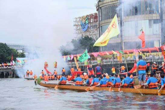 留住美丽乡愁,激发不竭精神动力 6月19日,番禺区洛溪村河面上飞桨逐浪,热闹祥和中一片欢声笑语。“龙舟竞渡 粽叶飘香”——“我们的节日·精神的家园”端午节主题活动在洛溪村渔人码头登场。龙舟竞渡、品龙船饭、体验插艾叶、挂香包等传统习俗相继亮相,让广大群众体验节日习俗,感受传统魅力。当天,村民们更在洛溪大桥下沿江摆起600桌龙船饭,6000余人言笑晏晏,共同体验喜庆的传统节庆氛围。